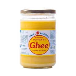 Das Ghee aus der ayurvedischen Küche wird oft als das „Gold der Ayurveda“ bezeichnet und genießt einen höheren Stellenwert als herkömmliche Butter, Öle oder Fette. Es ist nicht nur dafür bekannt, das „Agni“ oder Verdauungsfeuer zu stimulieren, sondern gilt auch als das am einfachsten verdauliche Fett, dank des besonderen ayurvedischen Herstellungsverfahrens.